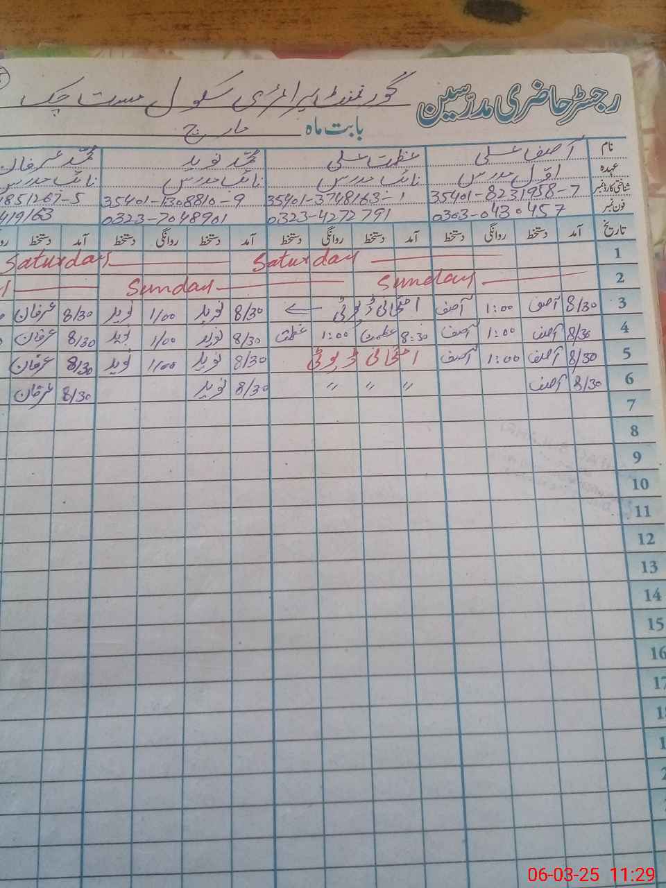 | Name: AS**** AL**** Designation: (School Headmaster's/Headmistress's) ESE Phone/Cell Number: 03**** |
