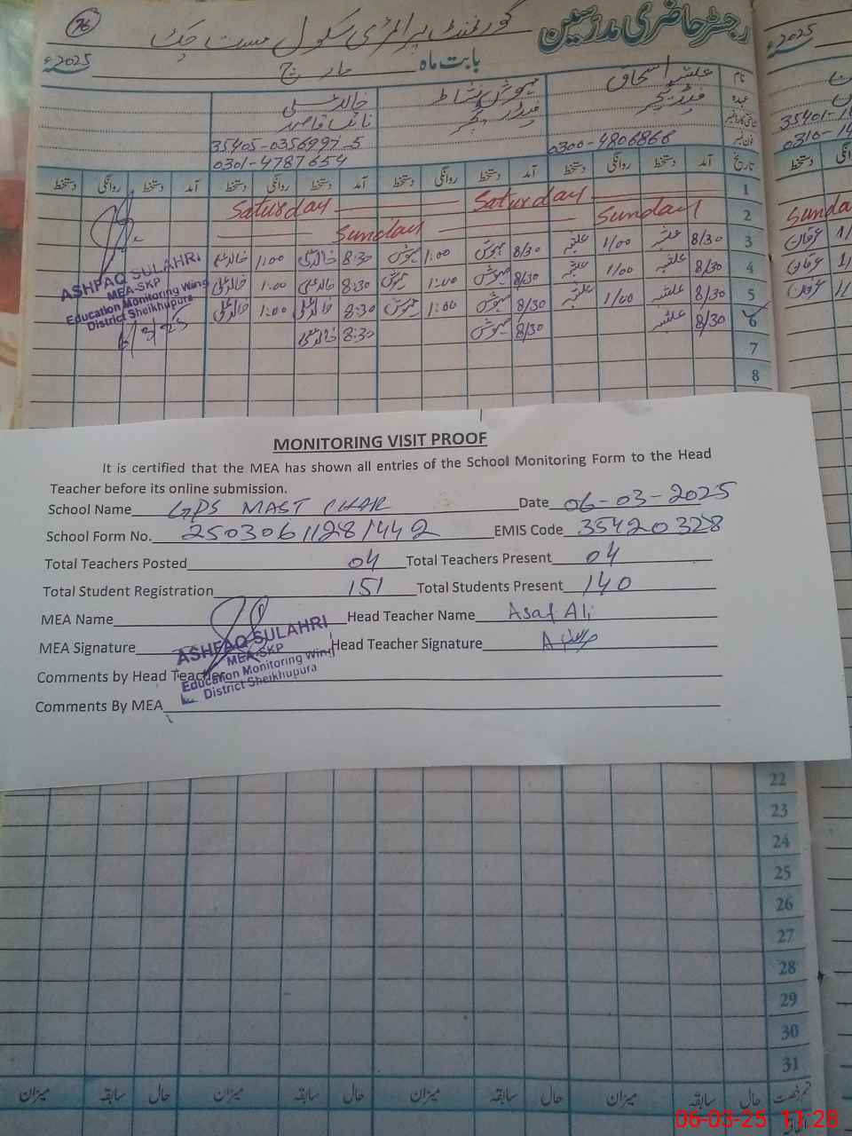 | EMIS Code: 35420328 | Name of School: GPS MAST CHAK | |||