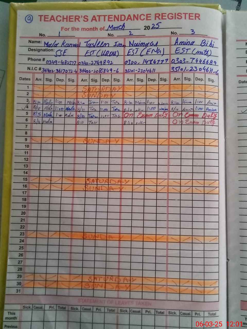 | 35**** | Am**** Bi**** | Regular | 0 | 2 | 0 | 0 | 0 | 0 | 0 | 0 | 0 | Exam Duty | |