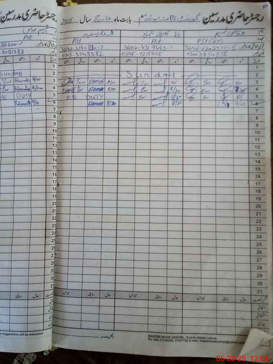 | Name: FA**** AB**** Designation: (School Headmaster's/Headmistress's) PST Phone/Cell Number: 03**** |