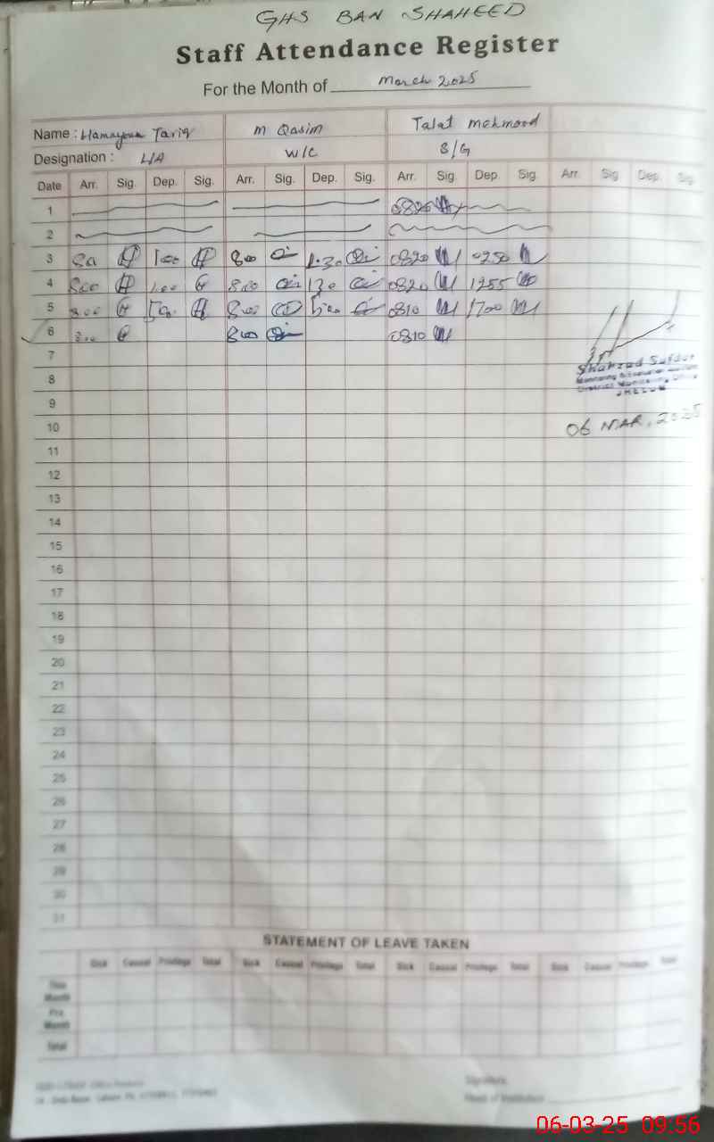 | 37**** | Za**** Ab**** | 1 | 0 | 0 | 28 | 0 | 0 | 0 | 0 | 0 | 0 | Absent (Un-Authorized) | |