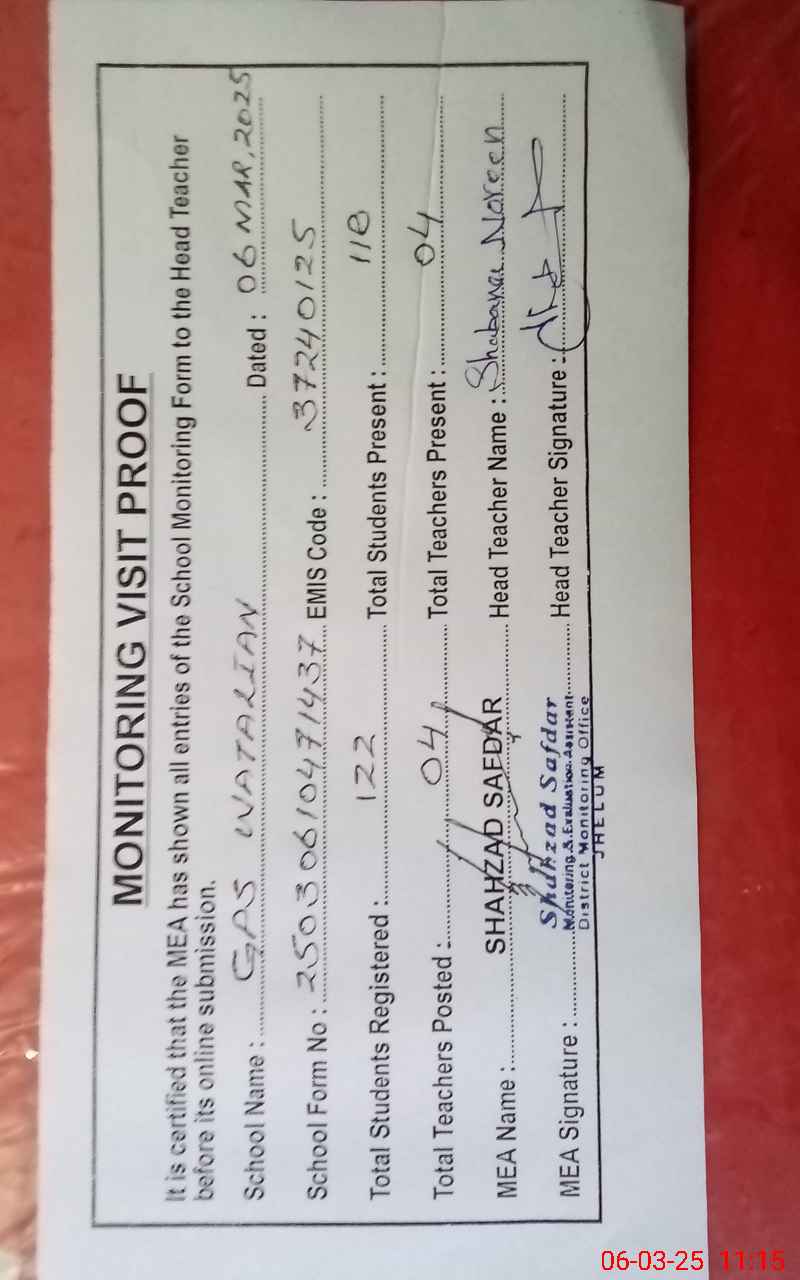 | EMIS Code: 37240125 | Name of School: GPS WATALIAN | |||