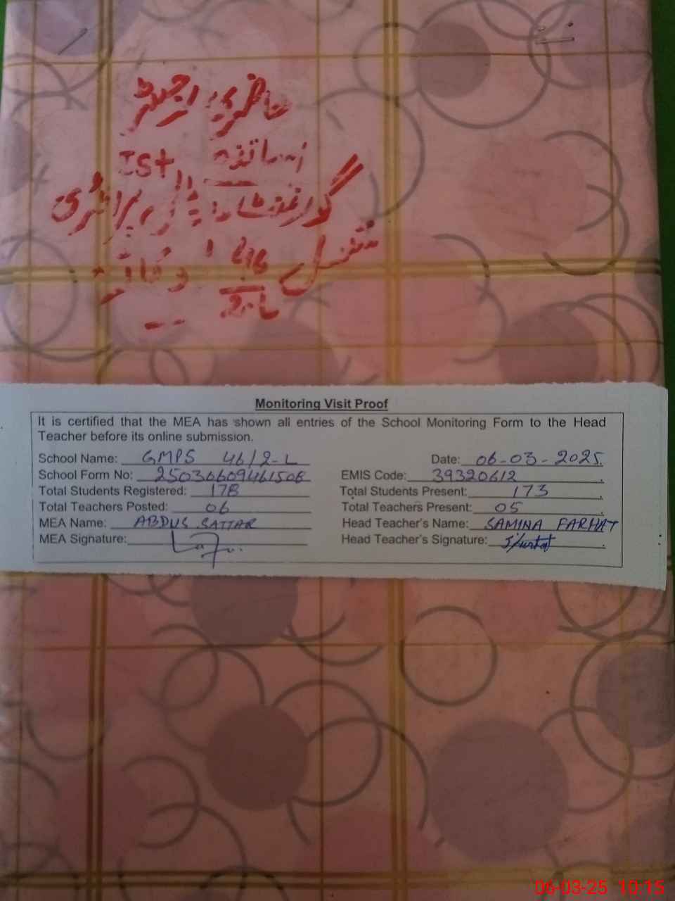 | EMIS Code: 39320612 | Name of School: GMPS 46/2-L | |||