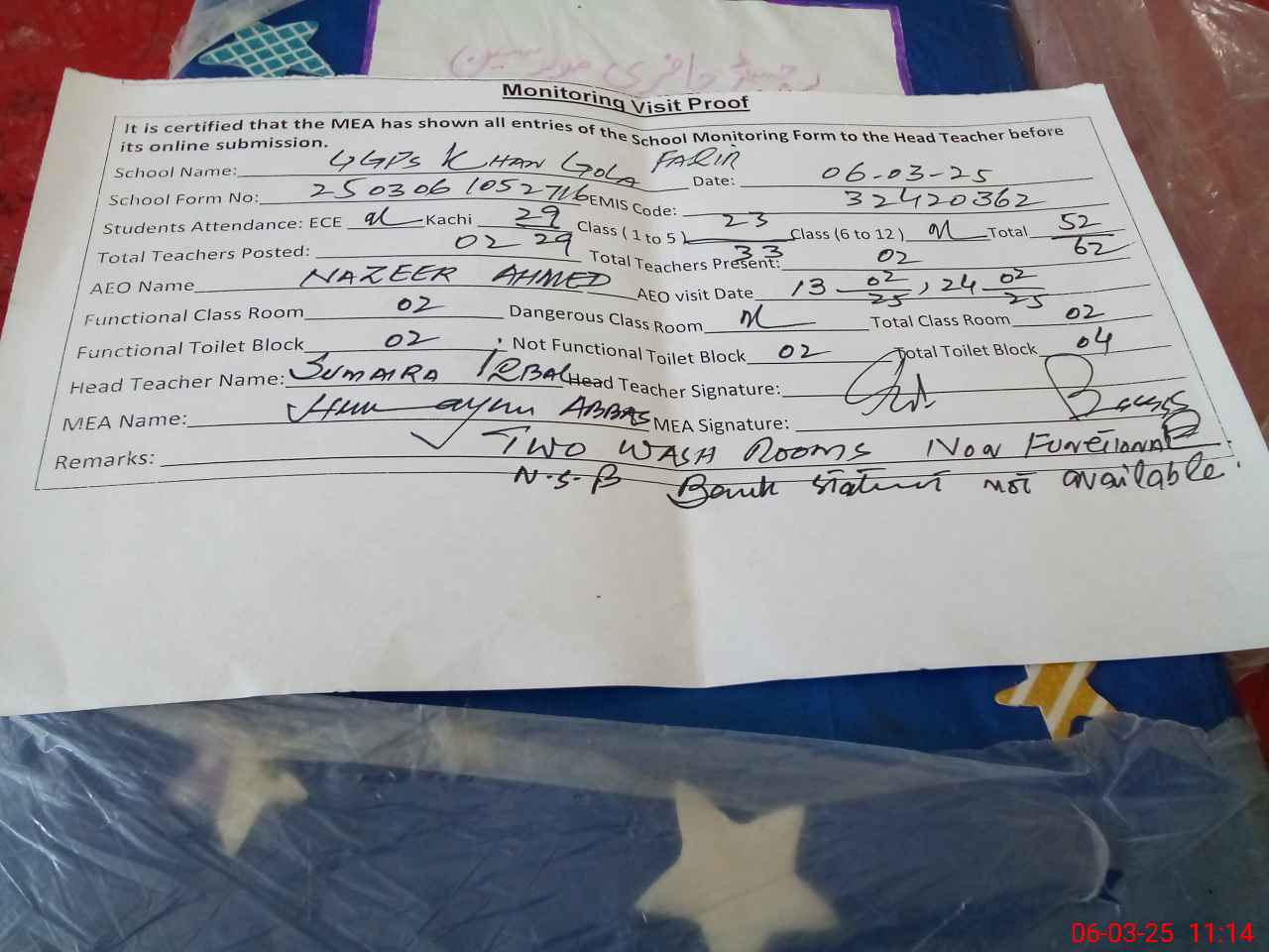 | EMIS Code: 32420362 | Name of School: GGPS KHAN GOLA FAQIR | |||