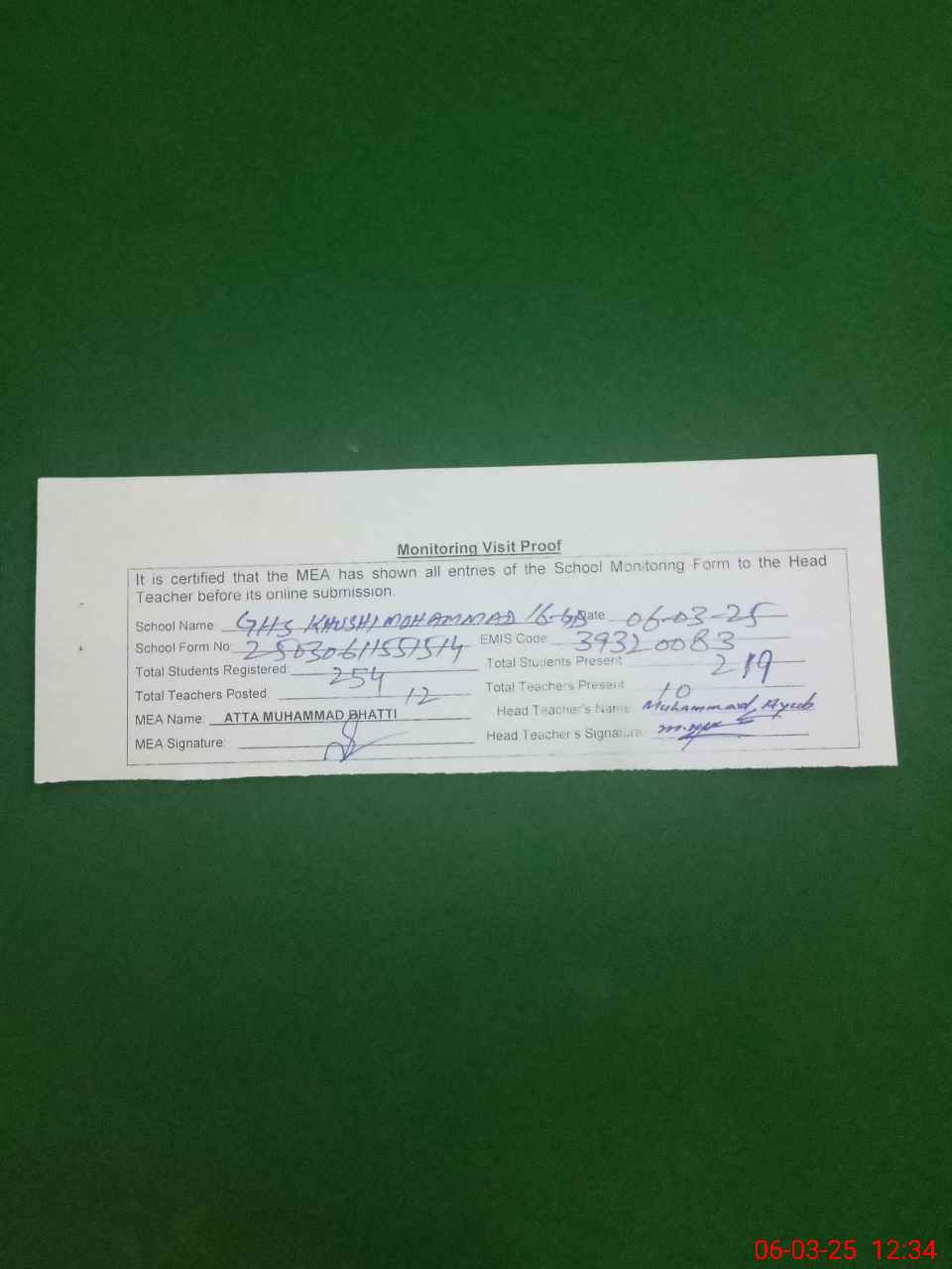 | EMIS Code: 39320083 | Name of School: GHS KHUSHI MUHAMMAD 16/GD | |||
