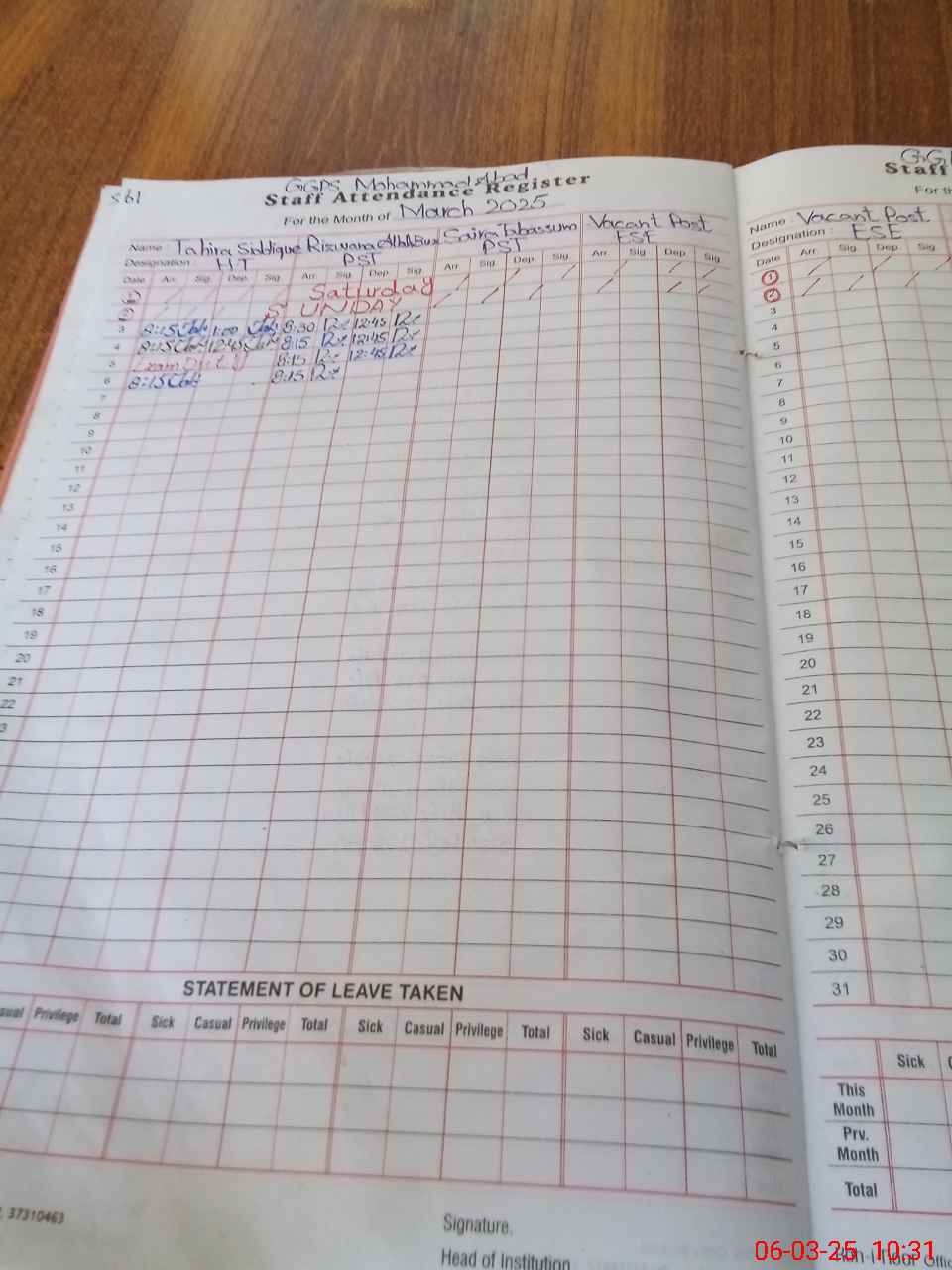 | 36**** | Sa**** Ta**** | PST | Regular | 28 | 0 | 0 | 28 | 0 | 0 | 0 | 0 | 0 | Maternity |