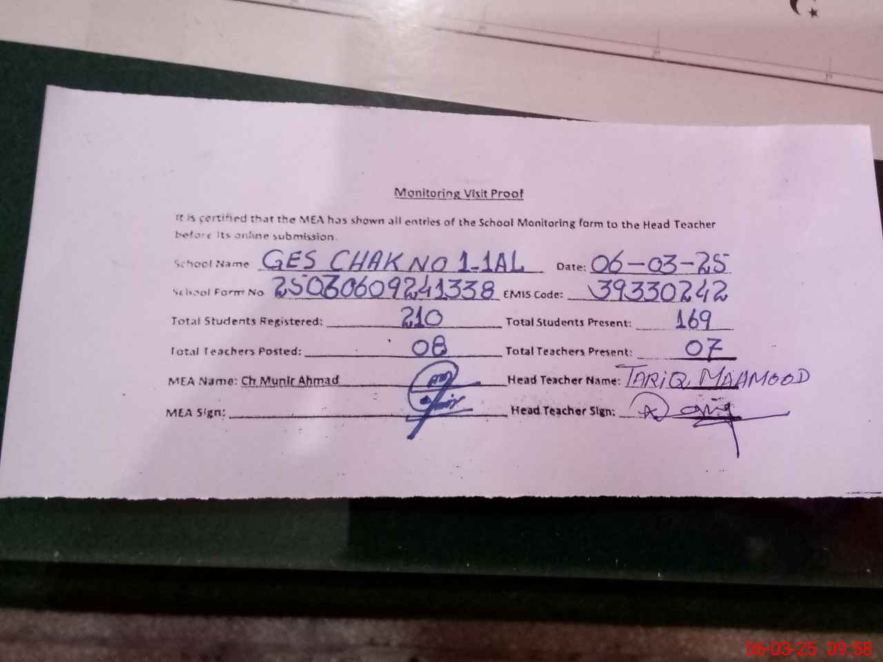 | EMIS Code: 39330242 | Name of School: GES CHAK NO 1/1-AL | |||