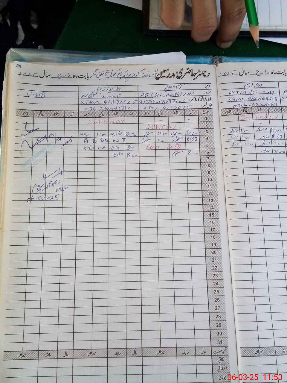 | CNIC | Full Name | Designation | R/C | Absence During Last Calender Month |