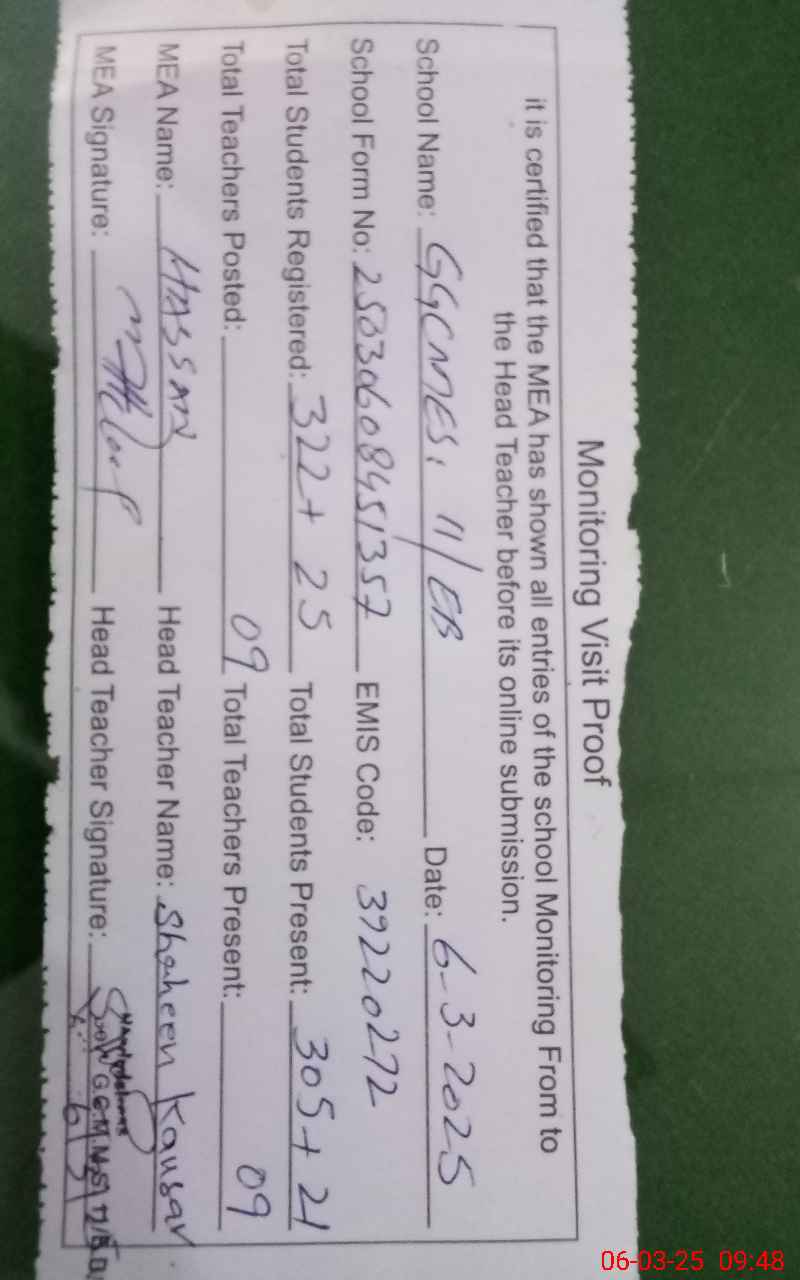 | EMIS Code: 39220272 | Name of School: GGCMES 11 EB P/O PIR SADAR DIN | |||