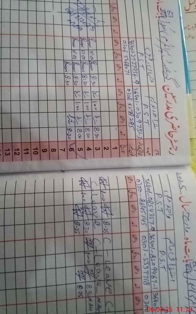 | CNIC | Full Name | Designation | R/C | Absence during last cal. month |