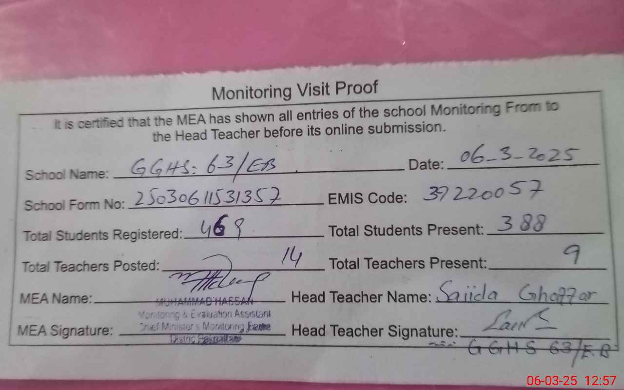 | EMIS Code: 39220057 | Name of School: GGHS 63 EB | |||