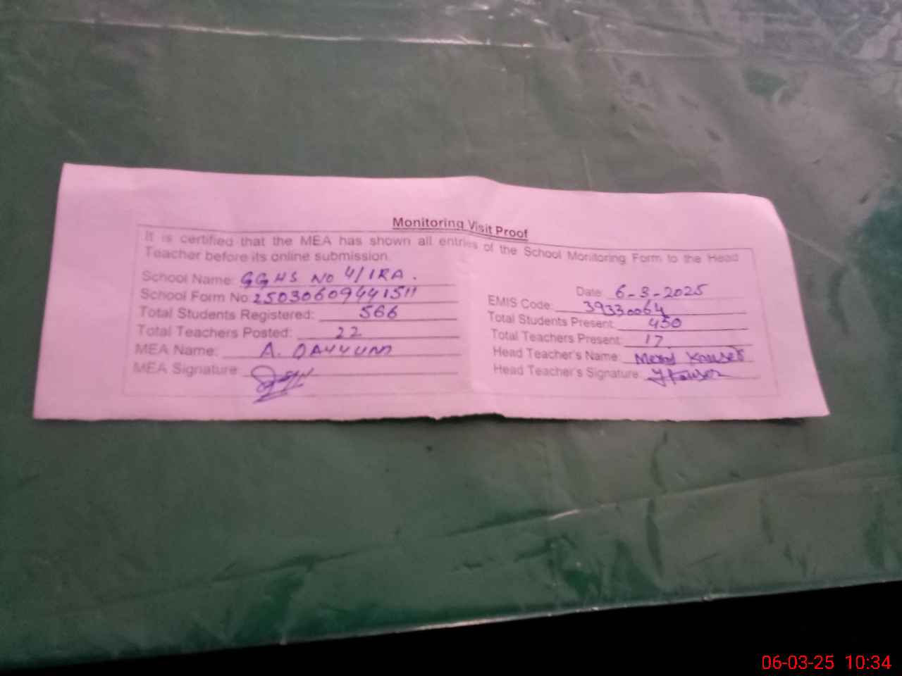 | EMIS Code: 39330064 | Name of School: GGHS CHAK NO. 4/1-RA | |||