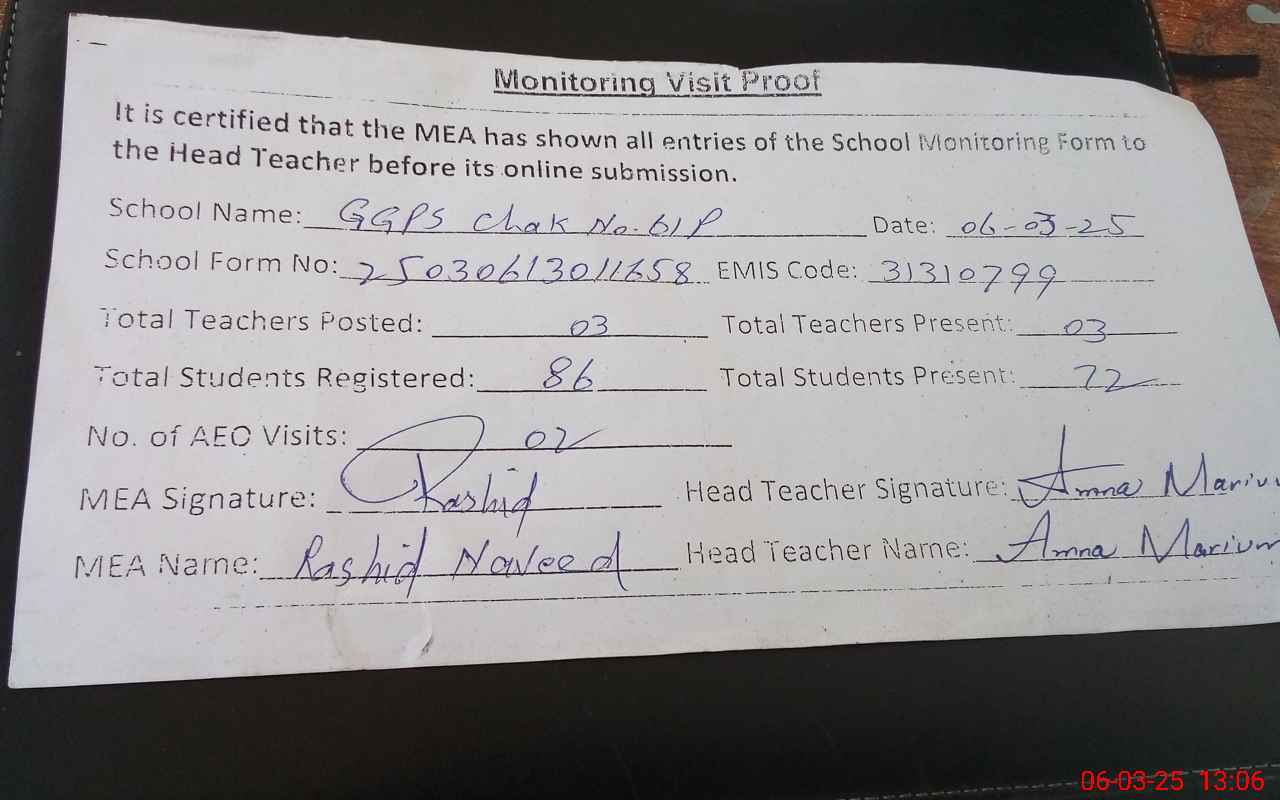 | EMIS Code: 31310799 | Name of School: GGPS CHAK NO 61/P | |||