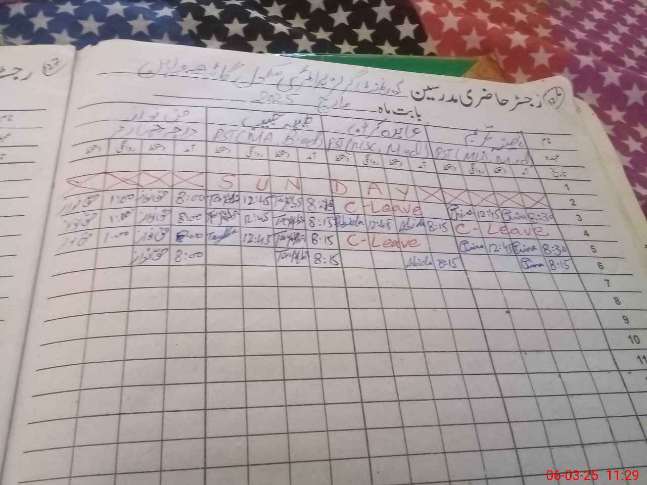 | CNIC | Full Name | Designation | R/C | Absence During Last Calender Month |