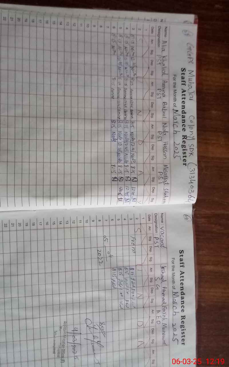 | Name: Al**** Kh**** Designation: (School Headmaster's/Headmistress's) PST Phone/Cell Number: 03**** |