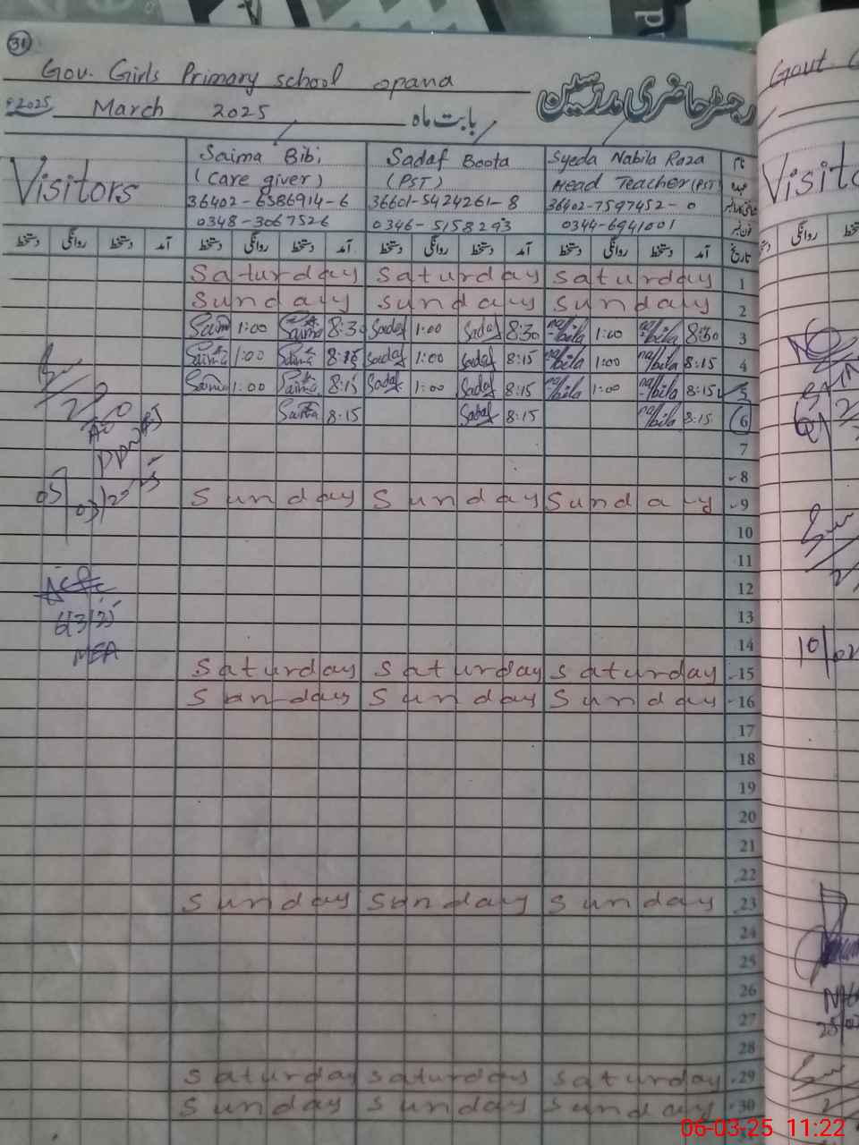 | Name: Sy**** Na**** Designation: (School Headmaster's/Headmistress's) PST(ARTS) Phone/Cell Number: 03**** |