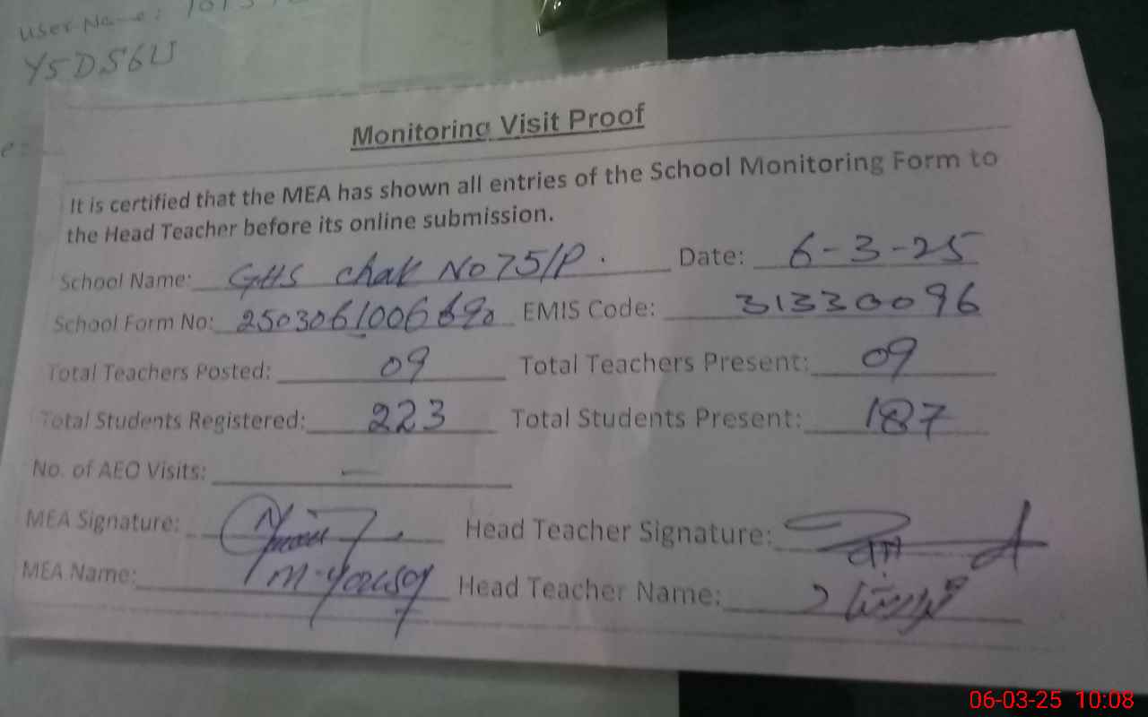 | EMIS Code: 31330096 | Name of School: GHS CHAK 75/P | |||