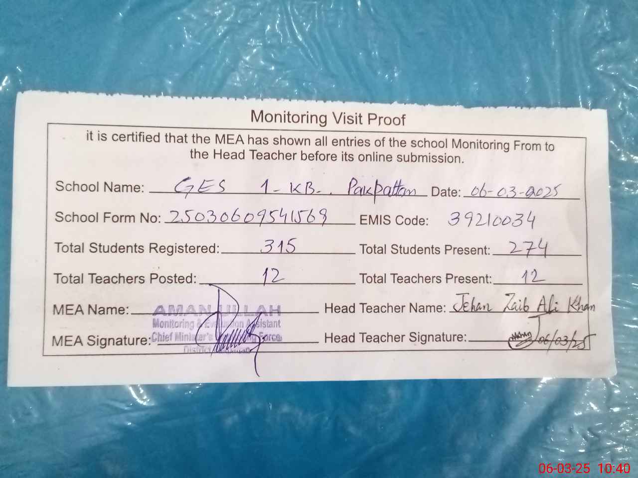 | EMIS Code: 39210034 | Name of School: GES 1 KB P/O PAKPATTAN | |||