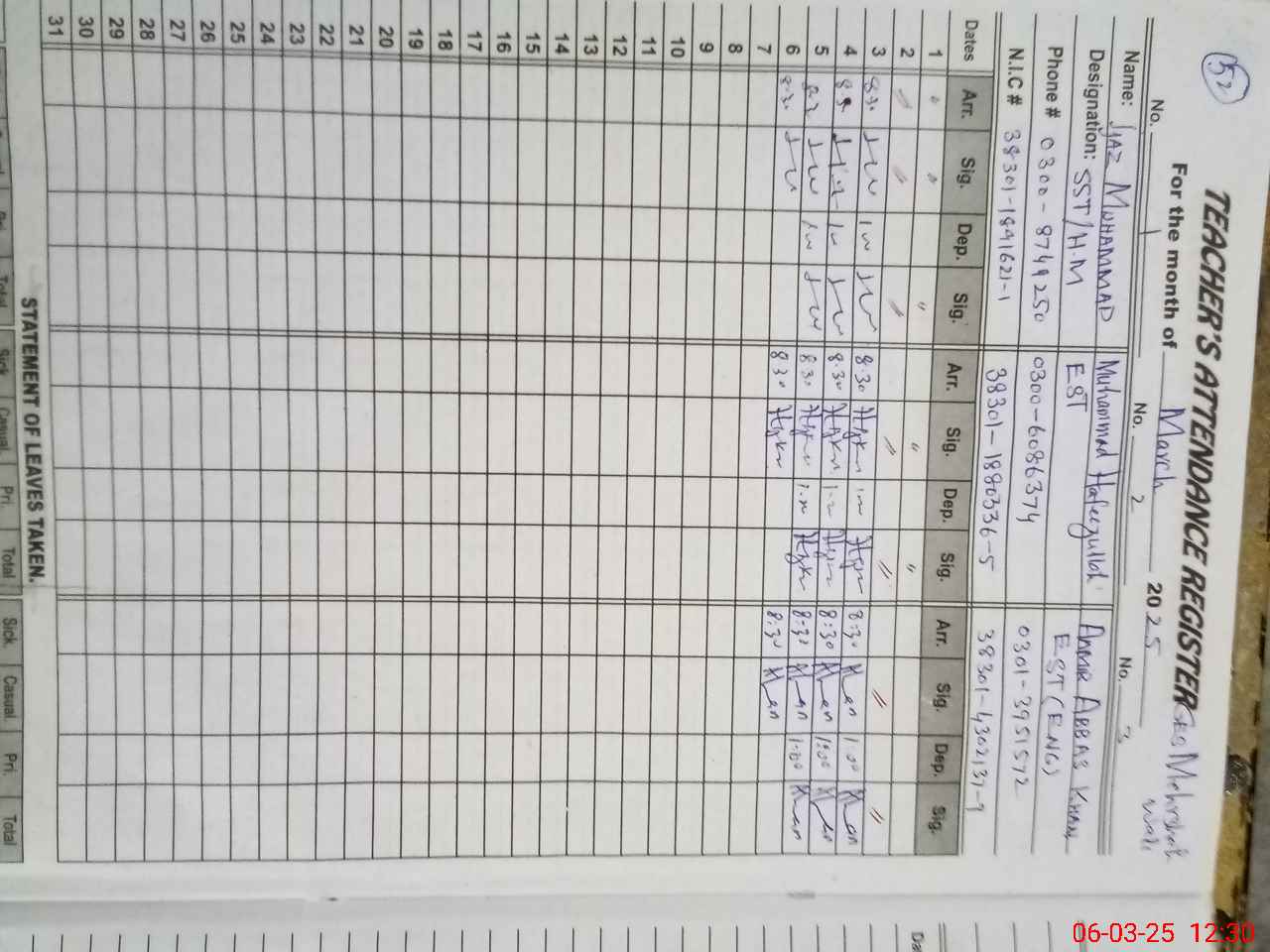 | Name: Ni**** Ah**** Designation: (School Headmaster's/Headmistress's) SST English Phone/Cell Number: 03**** |