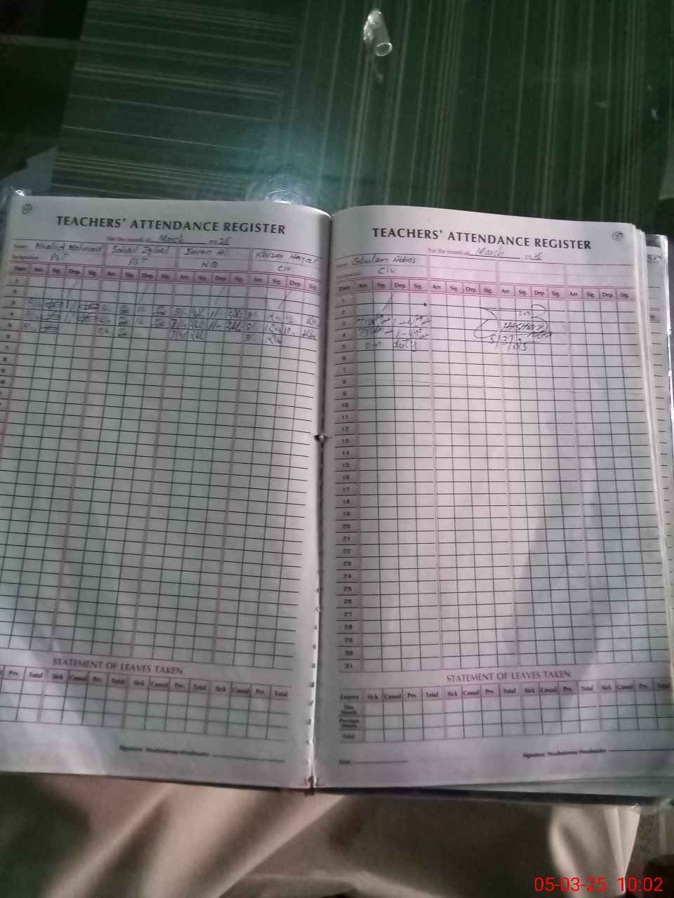 | Leave | Duty | Absent | Maternity | Medical | Ex- Pak |