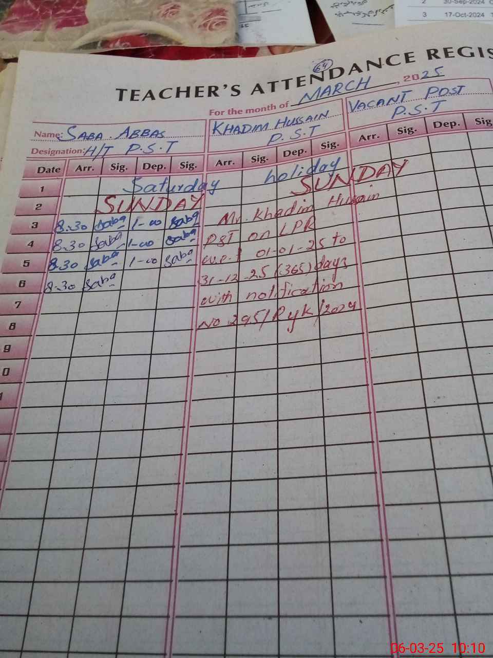 | Name: Sa**** Ab**** Designation: (School Headmaster's/Headmistress's) PST Phone/Cell Number: 03**** |