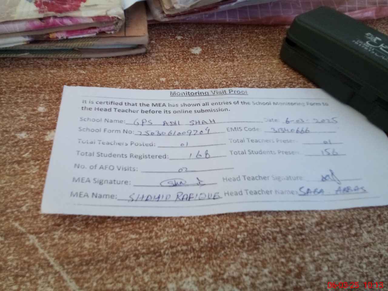| EMIS Code: 31340666 | Name of School: GPS ADIL SHAH | |||