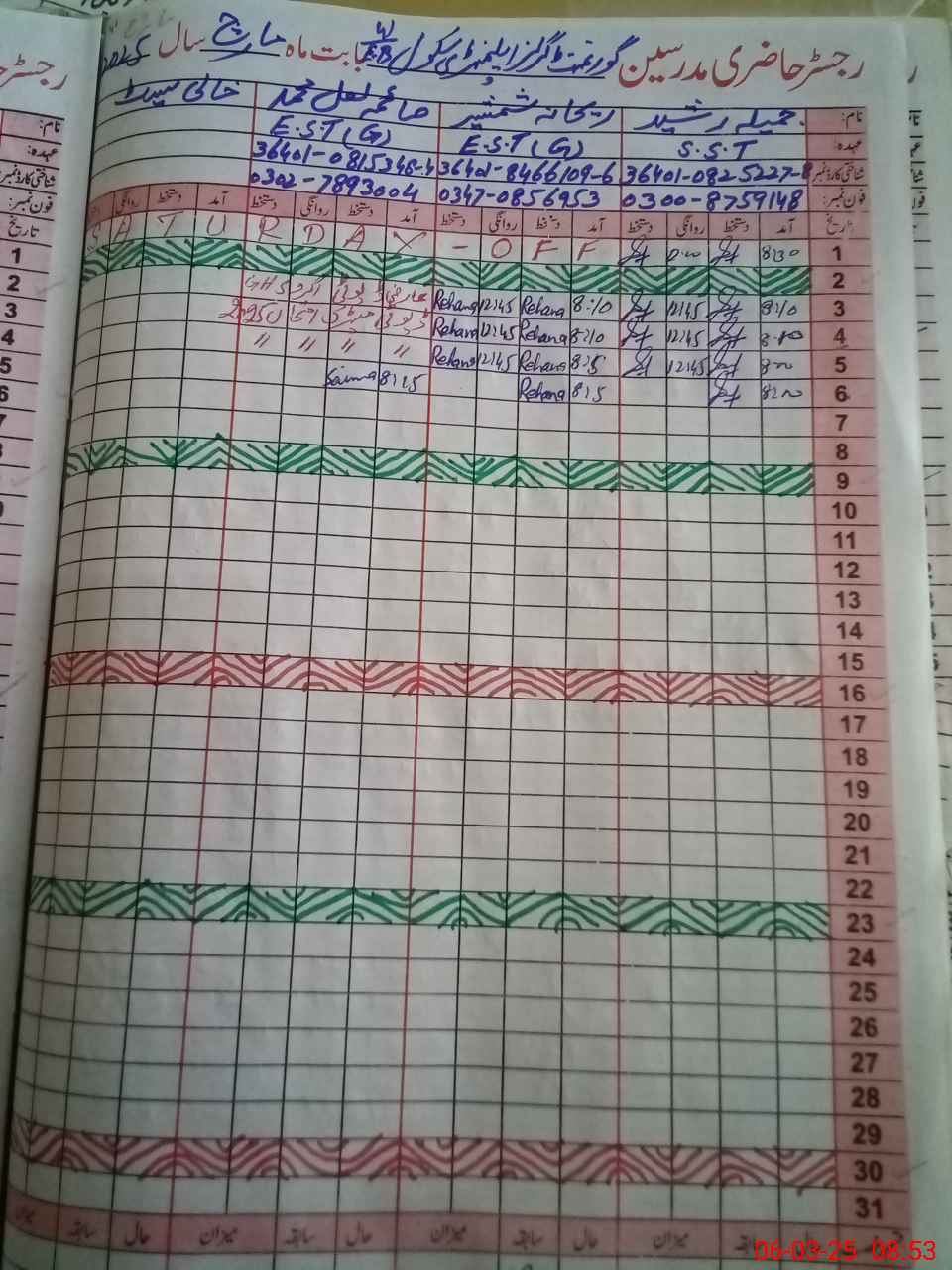 | Name: JA**** RA**** Designation: (School Headmaster's/Headmistress's) SST (GENERAL) Phone/Cell Number: 03**** |