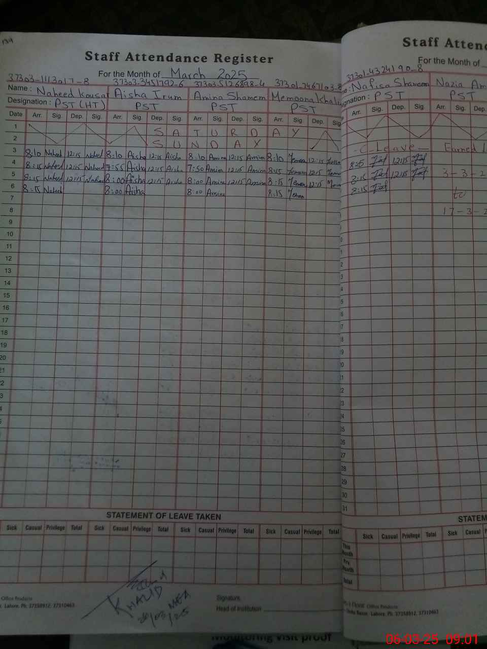 | Name: NA**** KO**** Designation: (School Headmaster's/Headmistress's) PST Phone/Cell Number: 03**** |