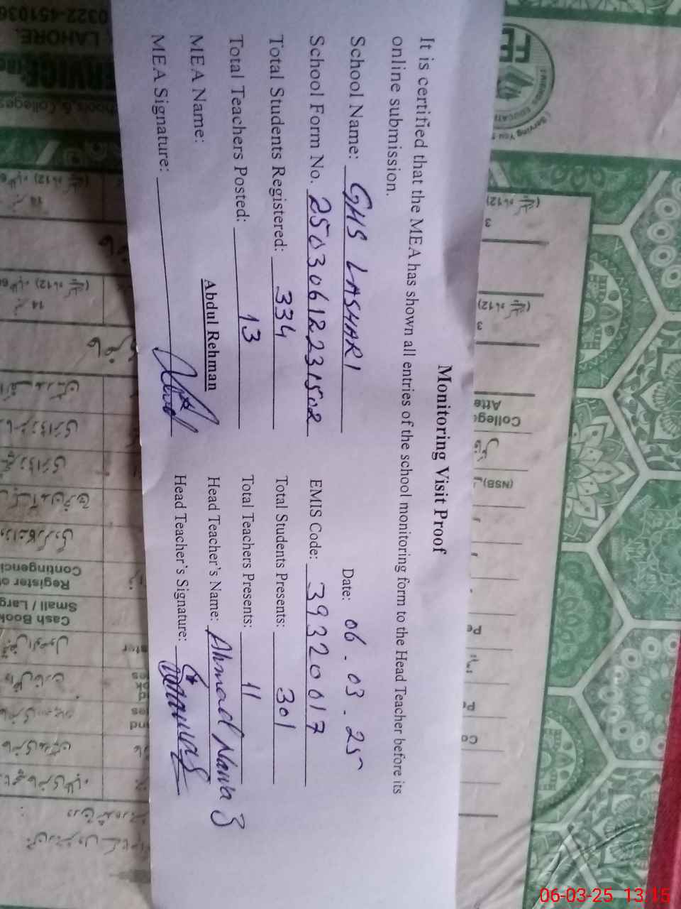 | EMIS Code: 39320017 | Name of School: GHS LASHARI | |||
