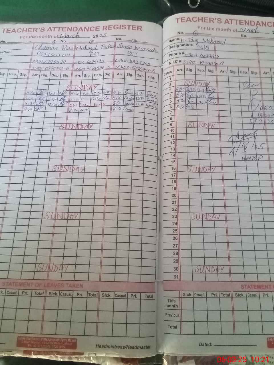 | Name: CH**** RI**** Designation: (School Headmaster's/Headmistress's) PTC/JV Phone/Cell Number: 03**** |