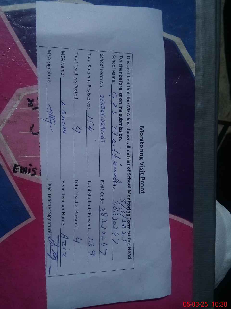 | EMIS Code: 38230247 | Name of School: GPS THAITHIAN WALA | |||