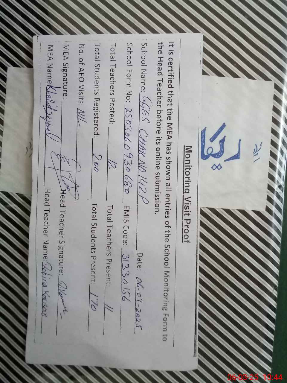 | EMIS Code: 31330156 | Name of School: GGES CHAK NO. 142/P | |||
