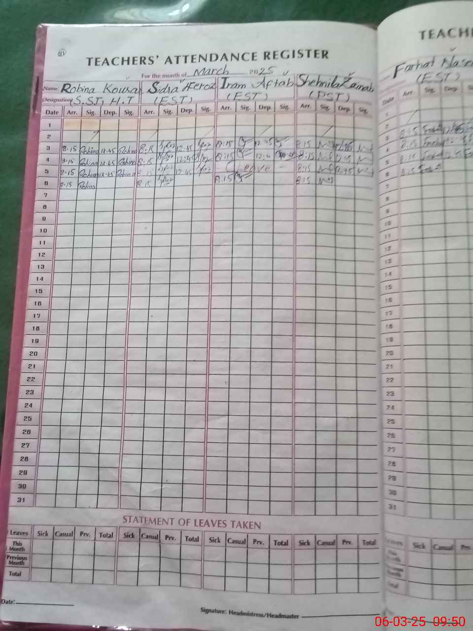 | 31**** | Sy**** Sh**** Mu**** | 3 | 1 | 0 | 0 | 0 | 0 | 0 | 0 | 0 | 0 | 0 | Exam Duty |