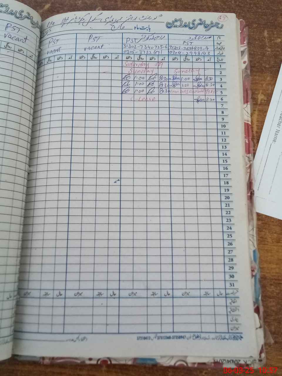 | Name: Si**** Me**** Designation: (School Headmaster's/Headmistress's) PST Phone/Cell Number: 03**** |