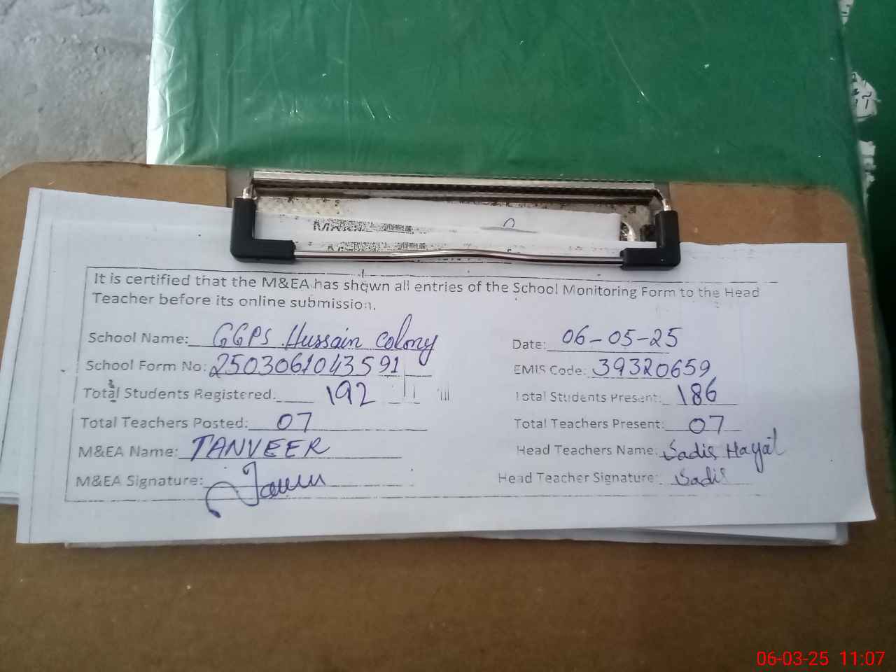 | EMIS Code: 39320659 | Name of School: GGPS HUSSAIN COLONY | |||