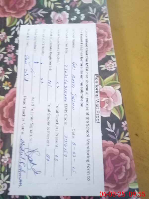 | Certified that this School was Inspected by the Undersigned MEA/DMO Today and the Information Stated Above is as Per Record. | |||||