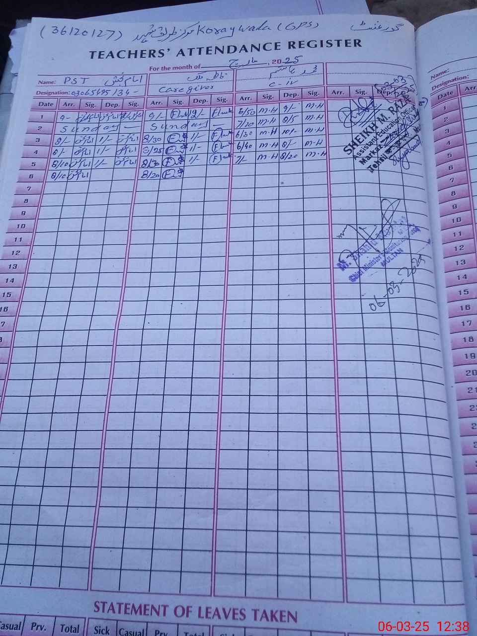 | EMIS Code: 36120127 | Name of School: GPS CHAH KORAY WALA | |||