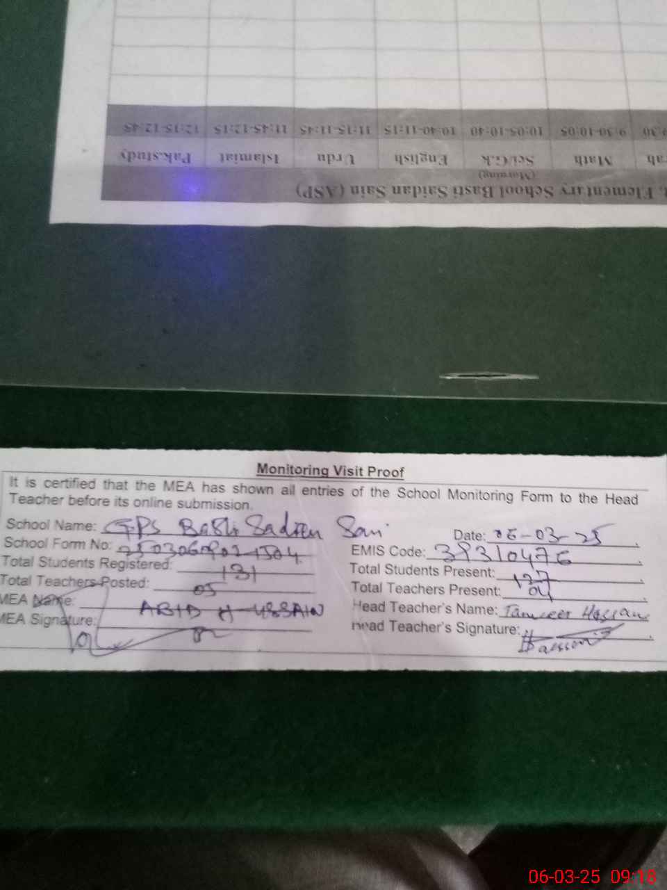 | EMIS Code: 39310476 | Name of School: GPS BASTI SADAN SAIN | |||