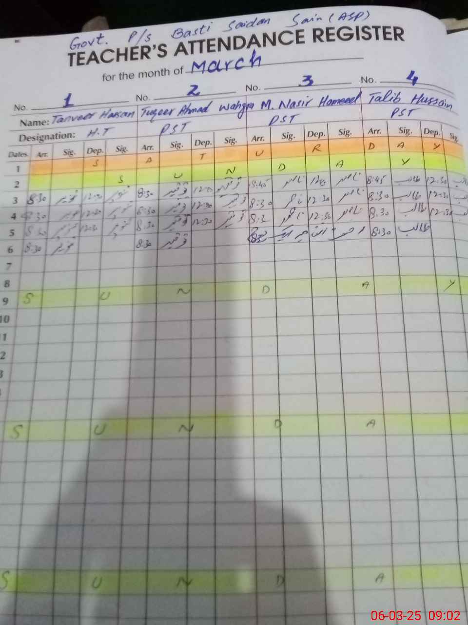| Name: Ta**** Ha**** Designation: (School Headmaster's/Headmistress's) PST Phone/Cell Number: 03**** |