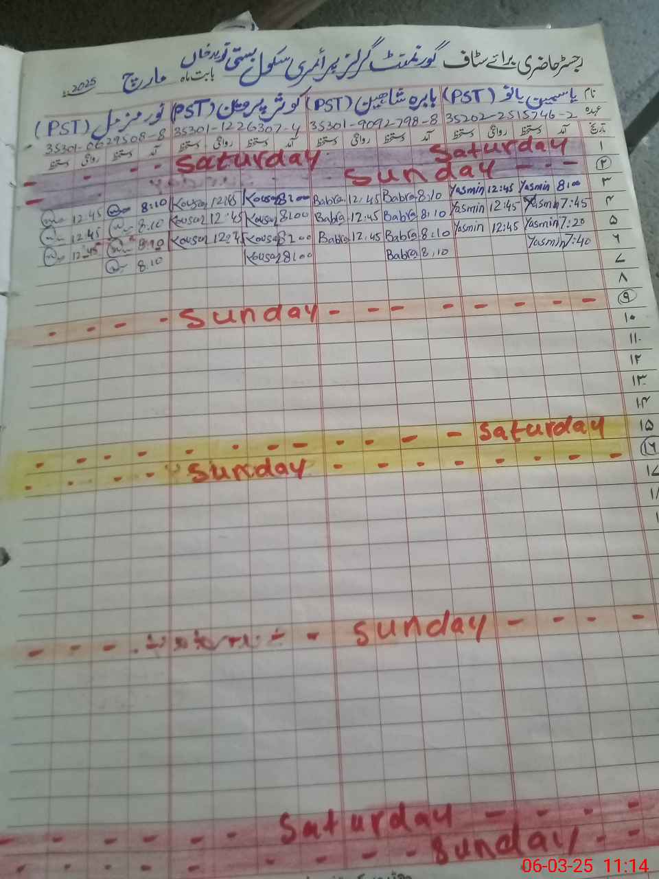 | Name: Ba**** Sh**** Designation: (School Headmaster's/Headmistress's) PST Phone/Cell Number: 03**** |
