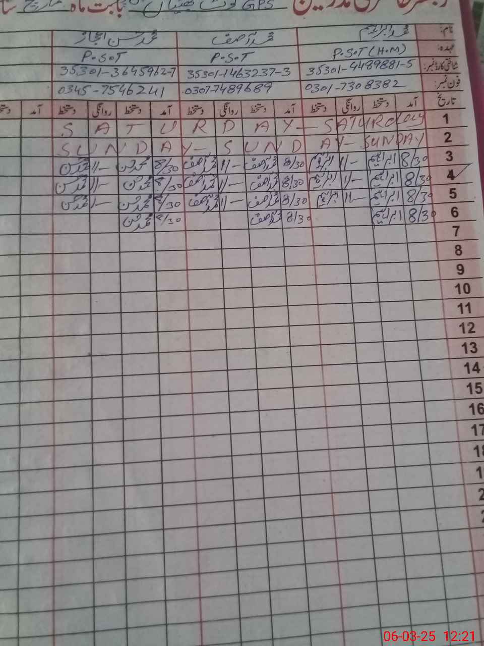 | Name: Mu**** Ib**** Designation: (School Headmaster's/Headmistress's) PTC/JV Phone/Cell Number: 03**** |