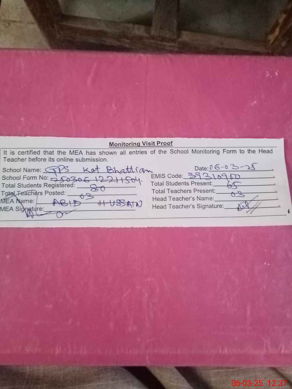 | EMIS Code: 39310900 | Name of School: GPS KOT BHATTIAN | |||