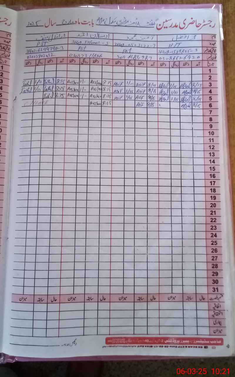 | Name: Mu**** Af**** Designation: (School Headmaster's/Headmistress's) PST Phone/Cell Number: 03**** |