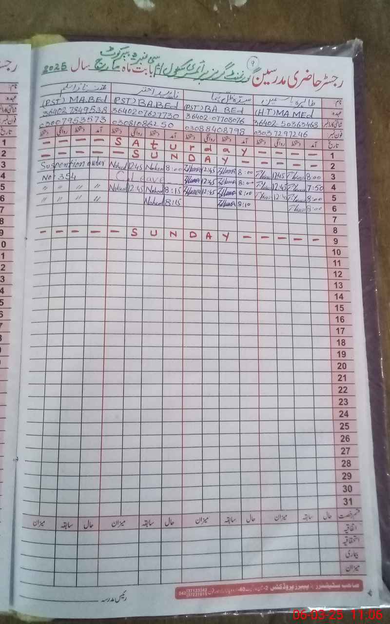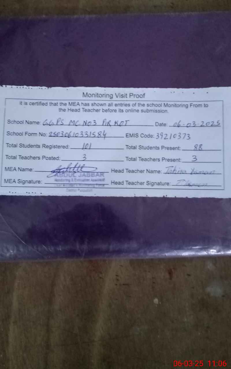 | EMIS Code: 39210373 | Name of School: GGPS MC NO. 3 PIR KOT PAKPATTAN | |||