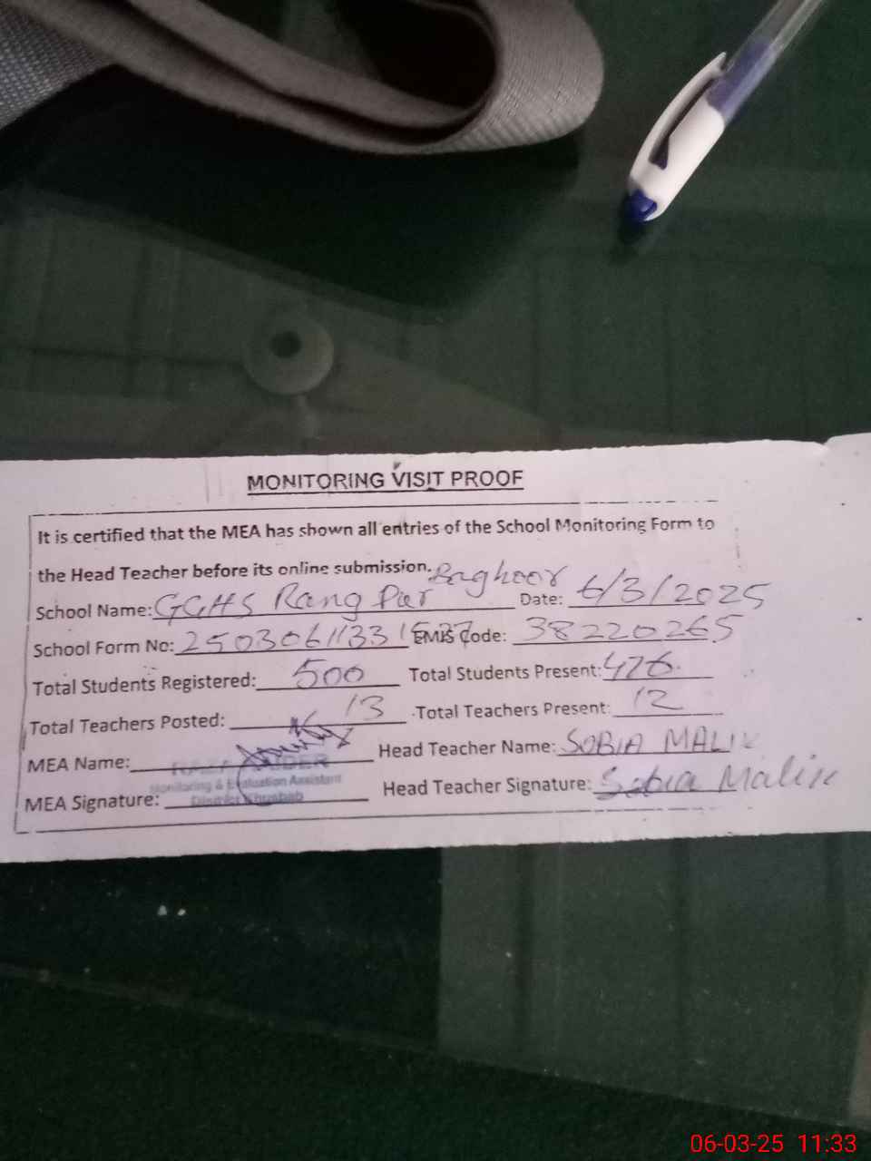 | EMIS Code: 38220265 | Name of School: GGHS RANG PUR BAGHOOR | |||