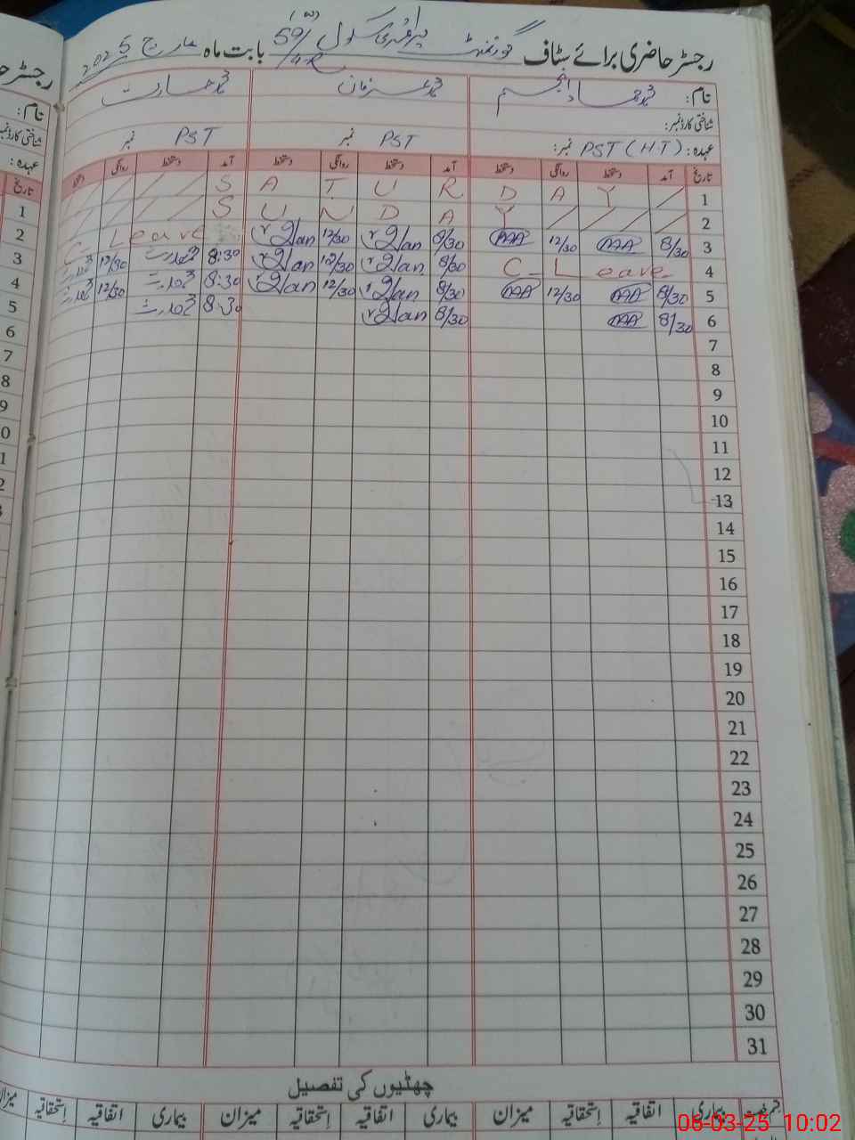 | CNIC | Full Name | Designation | R/C | Absence During Last Calender Month |