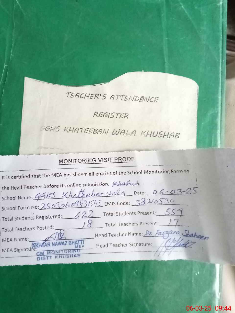 | EMIS Code: 38210530 | Name of School: GGHS KHATEEBAN WALA | |||