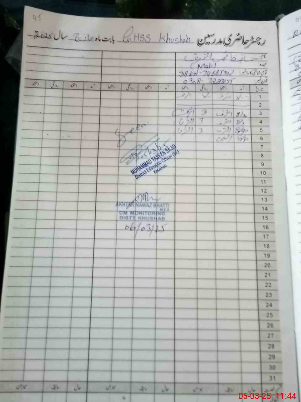 | Name: Qa**** Mu**** Am**** Designation: (School Headmaster's/Headmistress's) Principal Phone/Cell Number: 03**** |