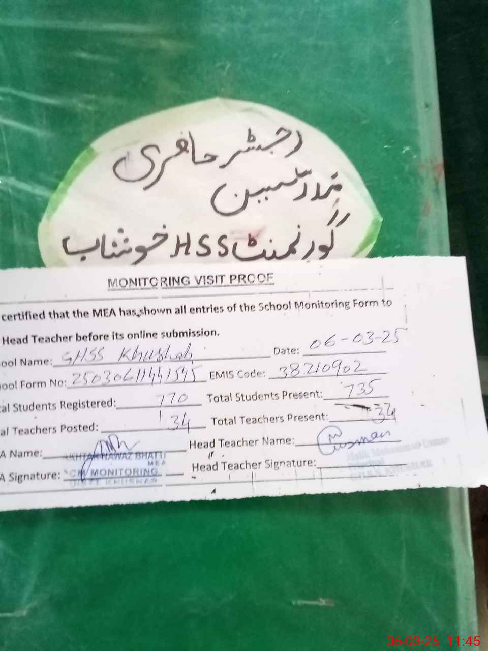 | EMIS Code: 38210902 | Name of School: GHSS KHUSHAB | |||