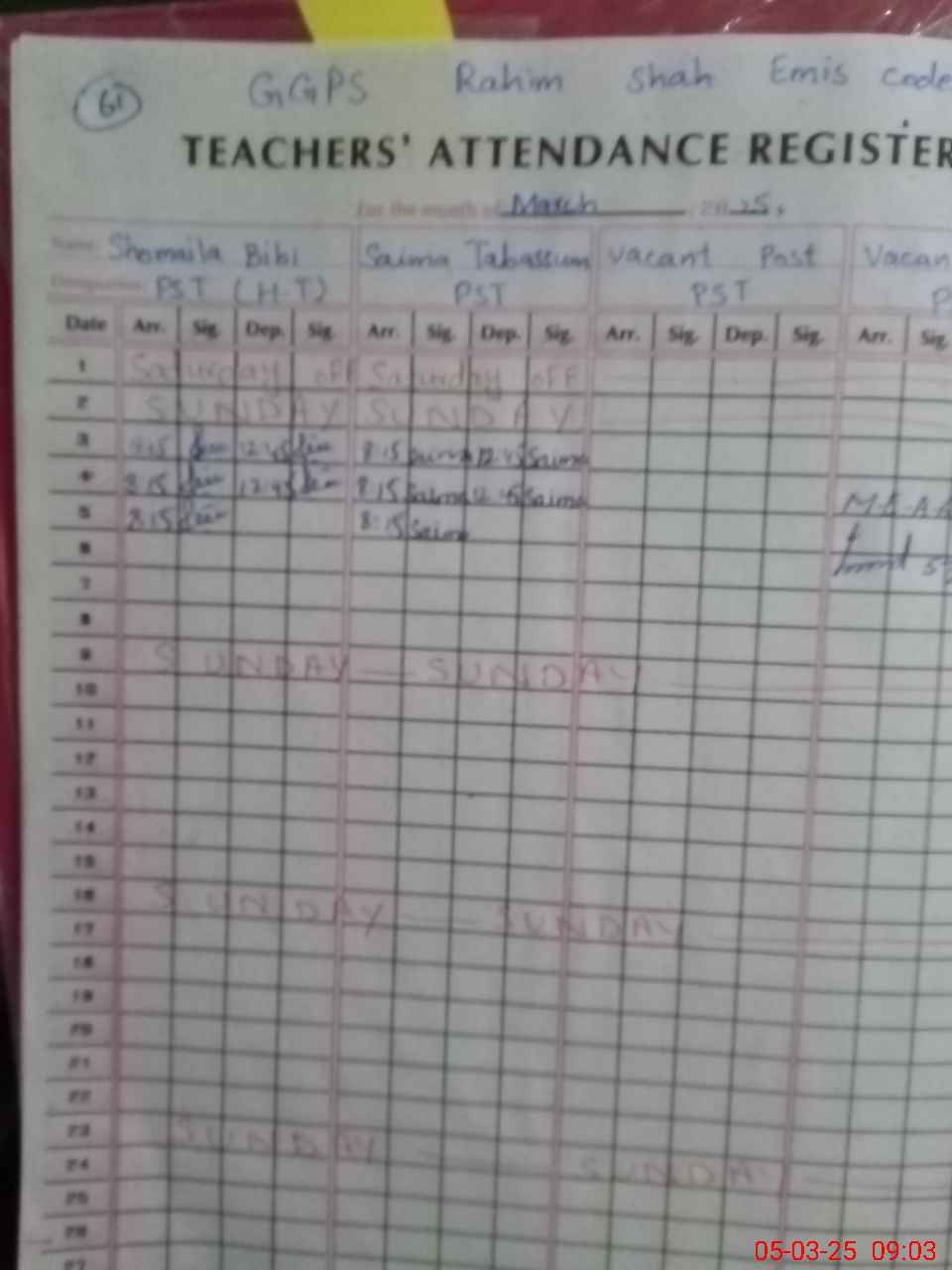 | Name: Sh**** Bi**** Designation: (School Headmaster's/Headmistress's) Pst Phone/Cell Number: 03**** |